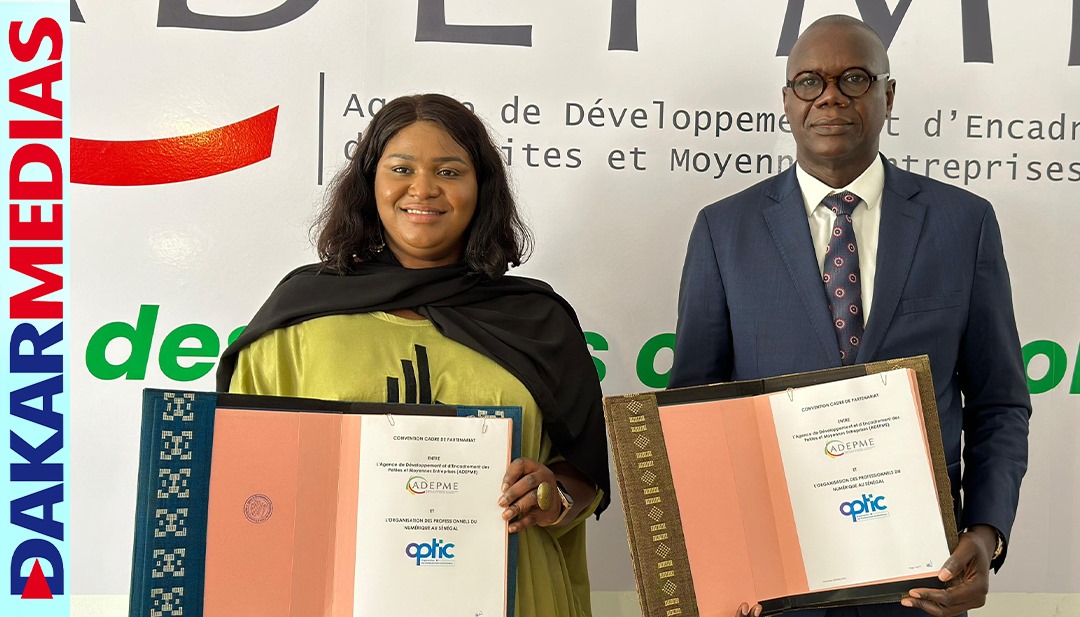 L’Agence de Développement et d’Encadrement des Petites et Moyennes Entreprises (ADEPME) et l’Organisation des Professionnels des TIC du Sénégal (OPTIC) ont officialisé aujourd’hui un partenariat ambitieux visant à renforcer l’accompagnement du secteur numérique sénégalais, en mettant un accent particulier sur les Petites et Moyennes Entreprises (PME). La signature de cette convention, qualifiée de « très stratégique » par la directrice générale de l’ADEPME, Mme Marie-Rose FAYE, marque une étape cruciale dans la volonté du gouvernement de faire du numérique un secteur prioritaire.