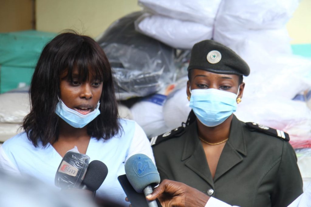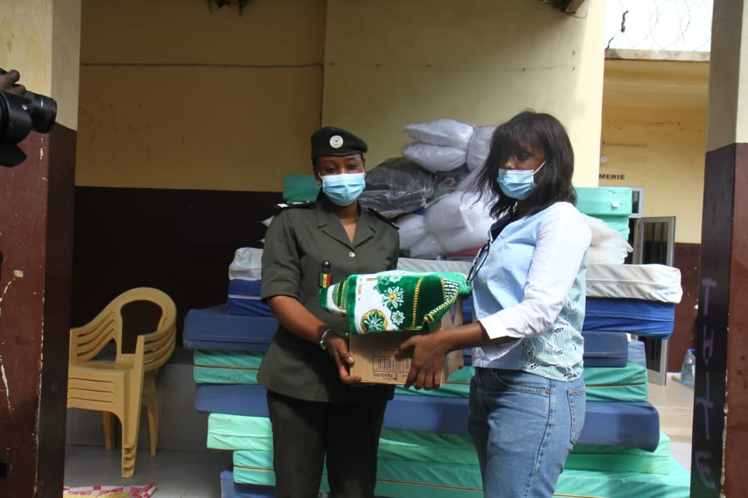C’est 8 Tables d’infirmerie, 12 Chaises Visiteurs, 22 Couchages Complets (Matelas-Draps-Oreillers), 48 Serviettes de Bain, un lot de Brosses à dents et de pâte dentifrice, 12 Tapis de prières et 1200 Paquets de Serviettes Hygiéniques (une prise en charge hygiénique pour un an) , voici l’important lot de matériel offert par Gabrielle KANE à la population carcérale féminine de Rufisque.