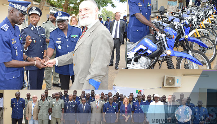 L’Ecole des Officiers de la Gendarmerie Nationale a servi de cadre pour abriter la cérémonie de remise de motos aux différents services en charge de la surveillance et de la gestion des frontières. L’activité s’est tenue en marge de la formation thématique conjointe pour la Police, la Gendarmerie et la Douane sur la surveillance des frontières, en présence du Haut Commandant de la Gendarmerie Nationale, Gl Meissa Niang, du Directeur de la Police de l’Air et des frontières, du représentant des Douanes, de SEM Joaquin Gonzalez-Ducay et de la Cheffe de Bureau de l’OIM au Sénégal.
