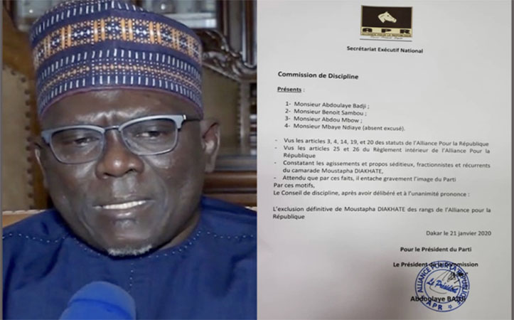 Il vient d’être exclu des rangs de l’APR, conformément aux statuts et règlements du parti par le conseil de discipline présidé par Abdoulaye Badji, Benoit Sambou, Abdou Mbow et Mbaye Ndiaye qui a été absent de la réunion tenue ce mardi 21 janvier 2020.